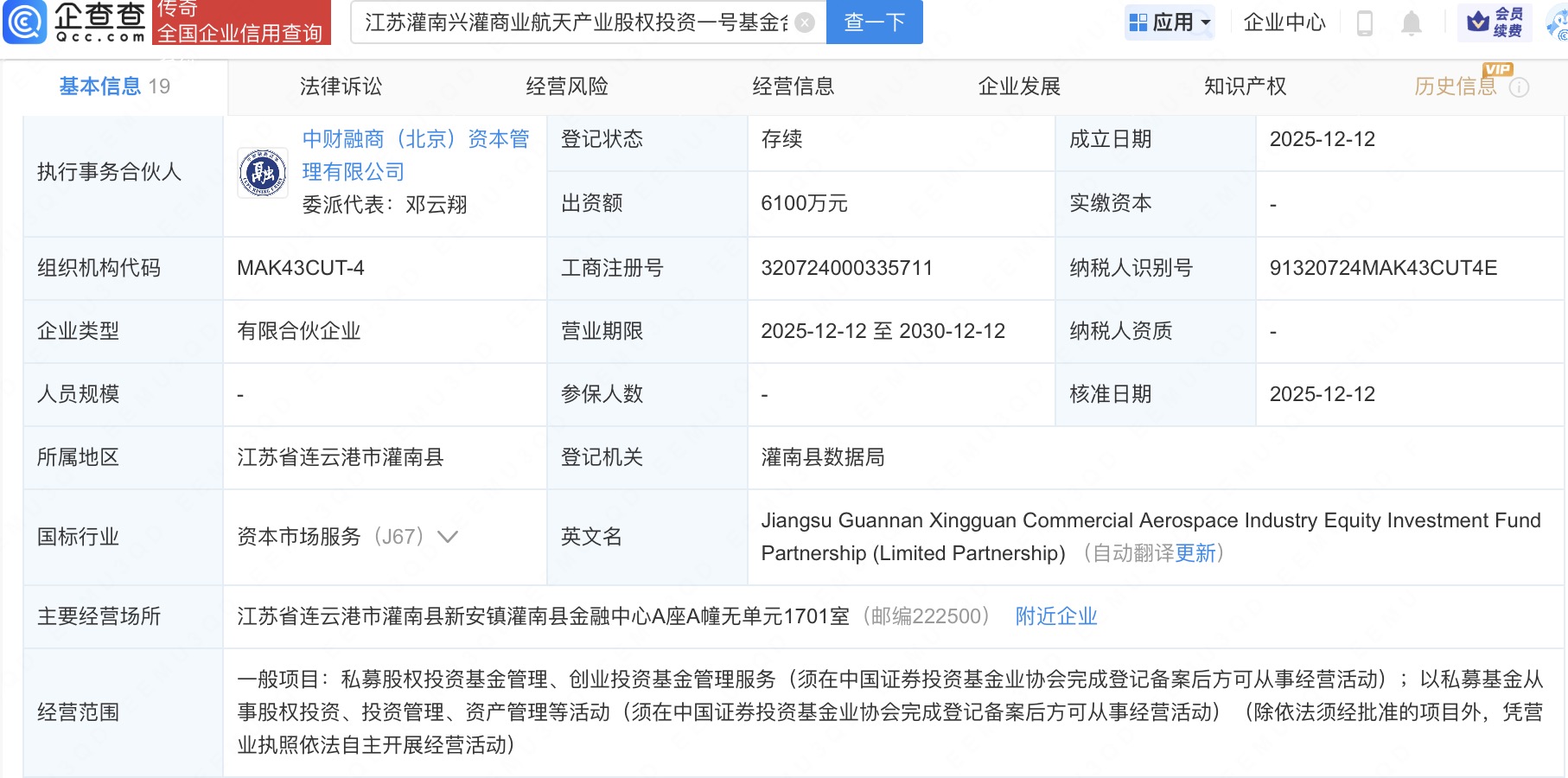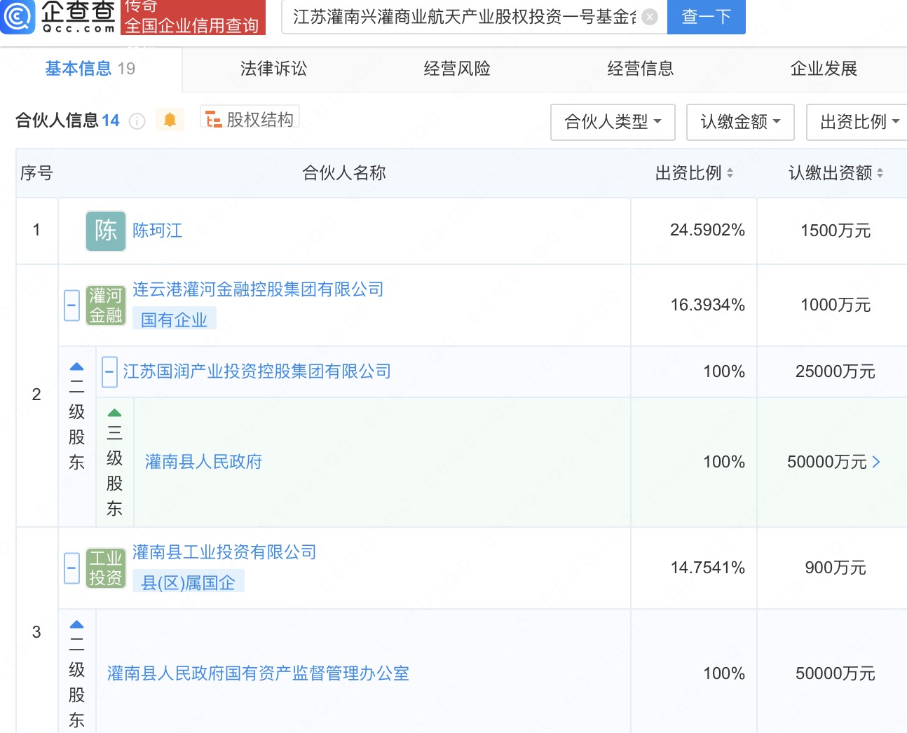 近日国内股票配资入门,江苏灌南兴灌商业航天产业股权投资一号基金合伙企业(有限合伙)成立,经营范围包含:私募股权投资基金管理、创业投资基金管理服务等。企查查股权穿透显示,该企业由连云港灌河金融控股集团有限公司等共同出资。